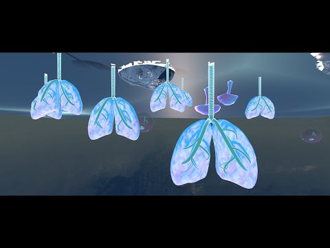 The completed breath space, primarily blue, depicts a surreal world where the sky and sea are reversed. Lungs, like trees, form a forest growing out of the sea. Dreamy particles and jellyfish float in the air, while plants and rocks of various transparent materials fill the sea. A mist shrouds the environment, adding a mysterious atmosphere. Players simulate breathing (inhalation/exhalation) by pressing and releasing the handle, controlling the breathing rhythm of the plants. Players can also shoot music bubbles to play piano sounds. This creates a slow, calm, and introverted atmosphere, guiding users into an emotional state of sadness and self-reflection.